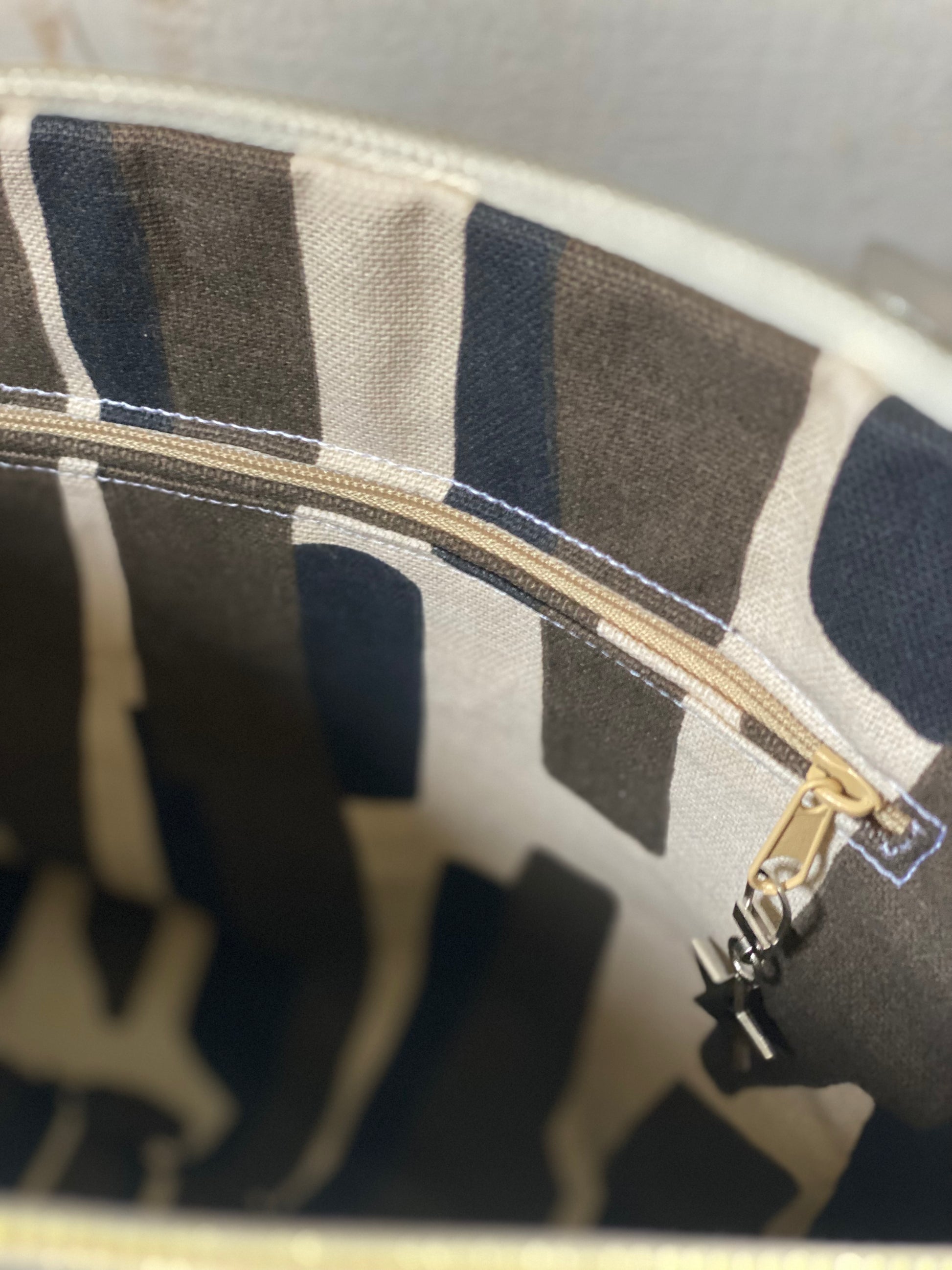 Sac bandoulière zippé , en toile coton épaisse et thermocollée sur l’envers.