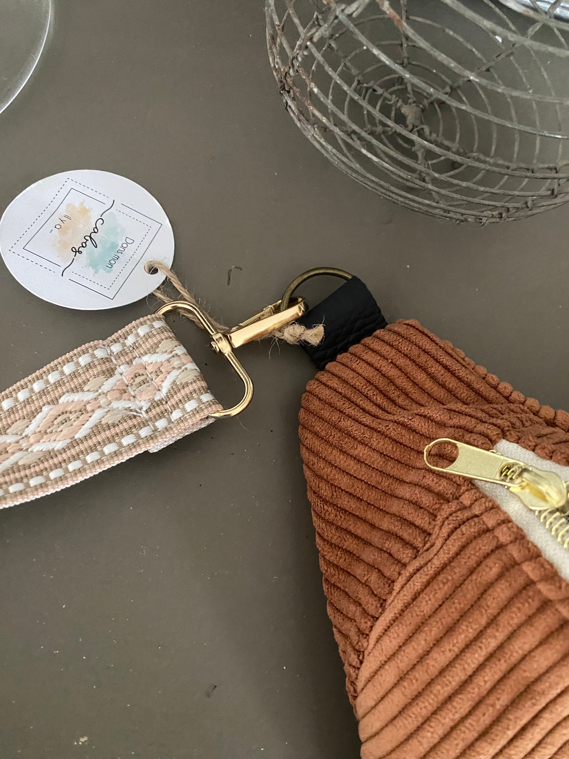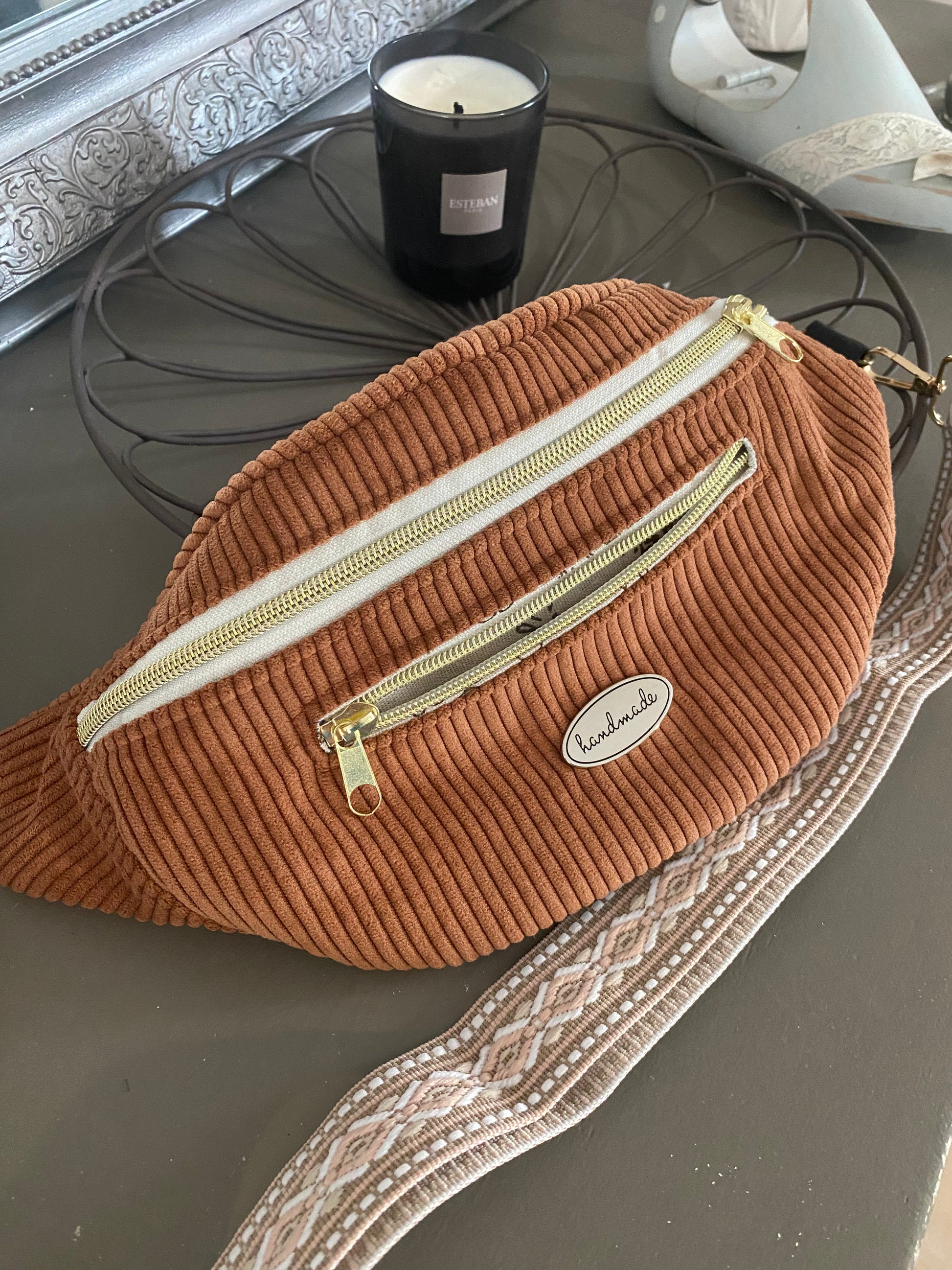 Sac banane velours Terracotta avec 2 poches