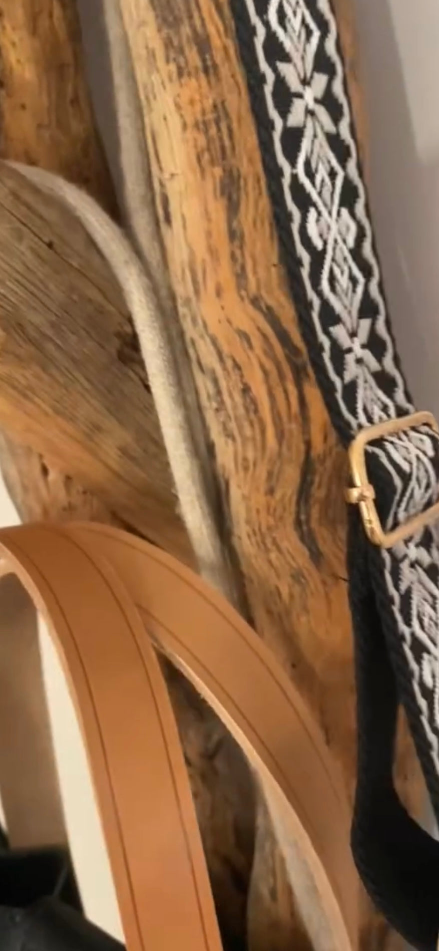 HOLE Sac cuir grainé noir et cappuccino, sangle textile .