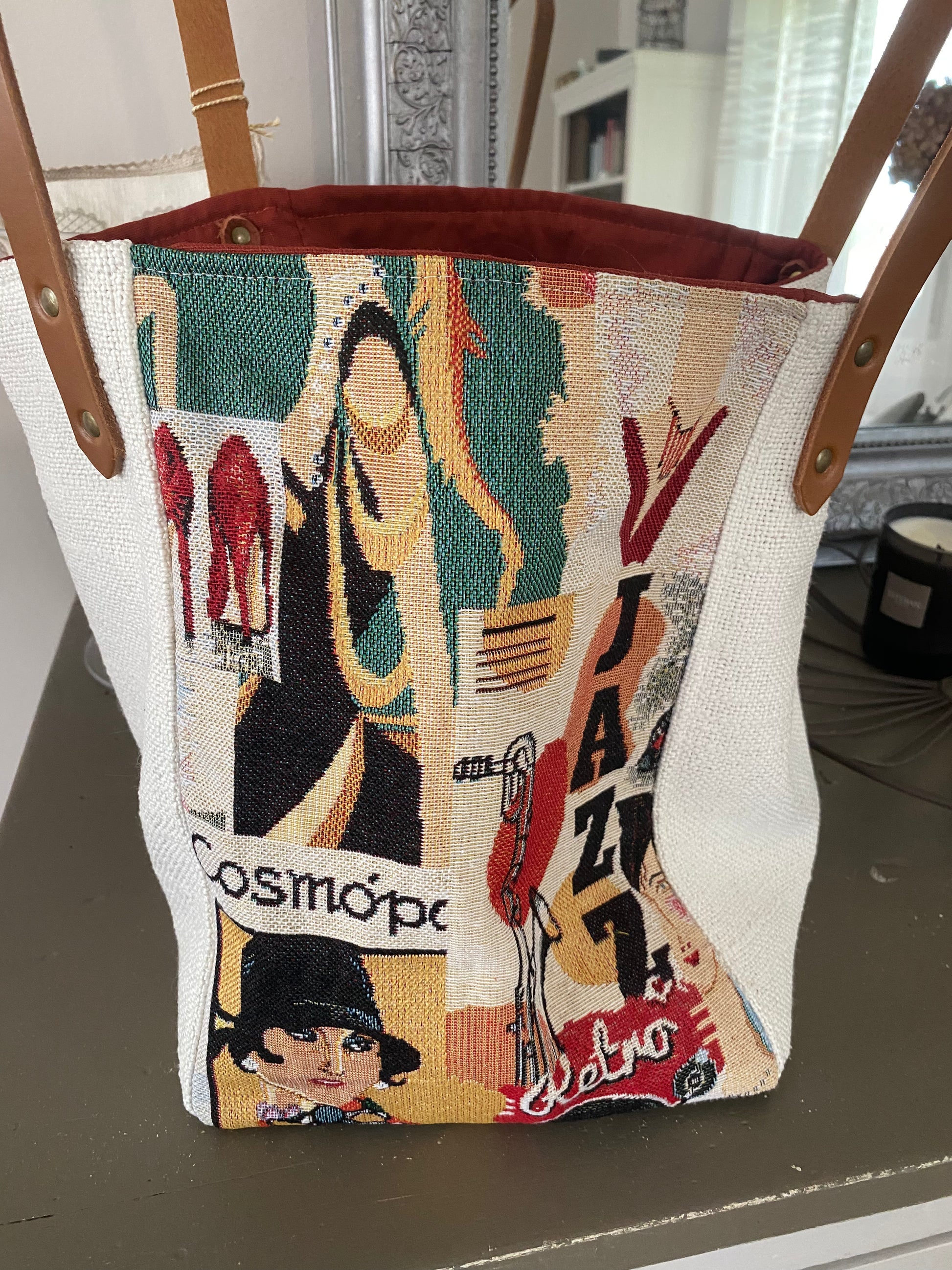 Sac cabas en jacquard écru et imprimé , thème jazz